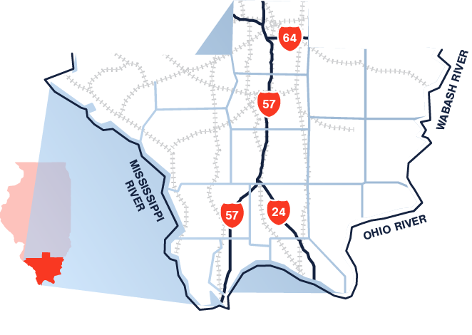 Perfectly positioned in the heart of the country, Southern Illinois is a logistical sweet spot - where interstates, railroads, and river ways converge to move business forward at full throttle.